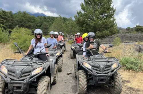 L’escursione in quad è ideale per chi vuole scoprire la natura dell’Etna vivendo un’avventura off-road. L’escursione si svolge per tutto l’itinerario su un quad, automatico e facile da guidare, può trasportare in sicurezza fino a un massimo di due persone, che saranno responsabili del proprio mezzo.