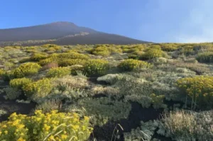Proseguendo lungo il tragitto attraverseremo la foresta di ginestre dell’Etna, scenderemo lungo dei canali di scorrimento lavico, passando fra paesaggi lunari e “dagale”, isole boschive circondate da lava pietrificata.